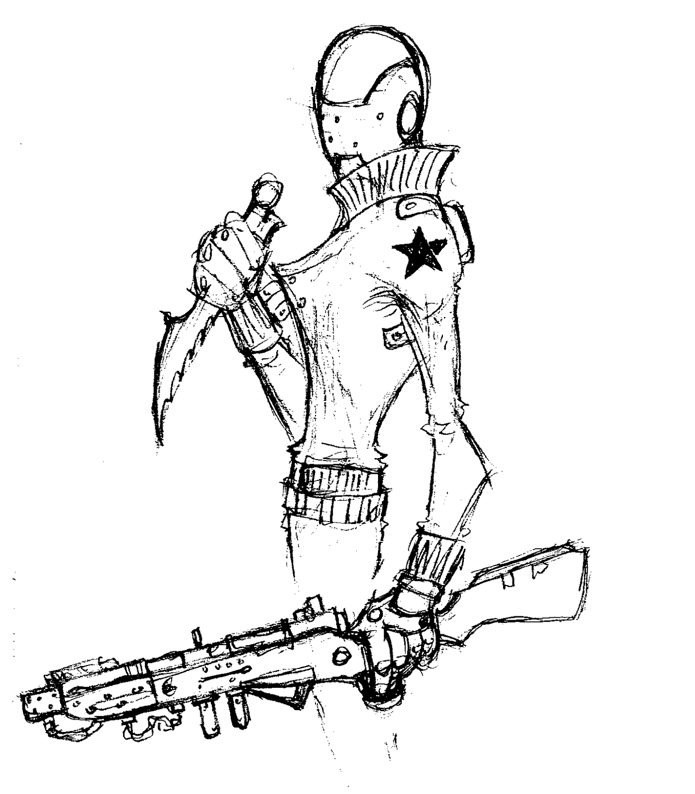Okay so obviously you always start out with some concept sketches working and reworking your character. This first sketch is where the character I was designing really began to come through.